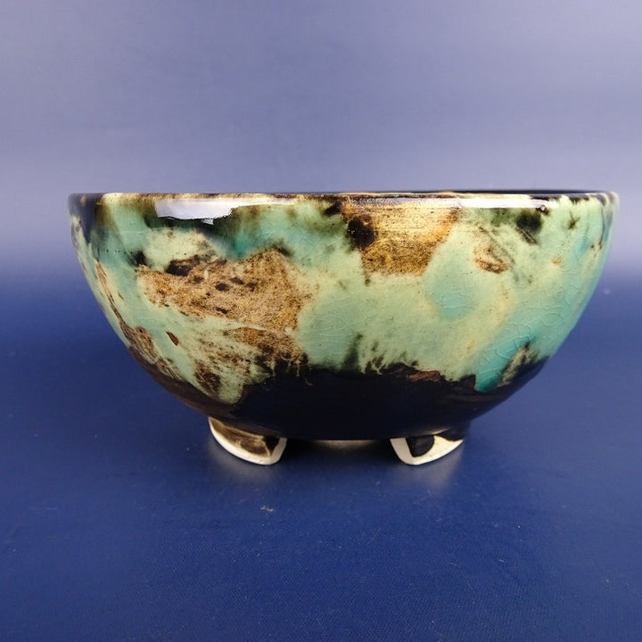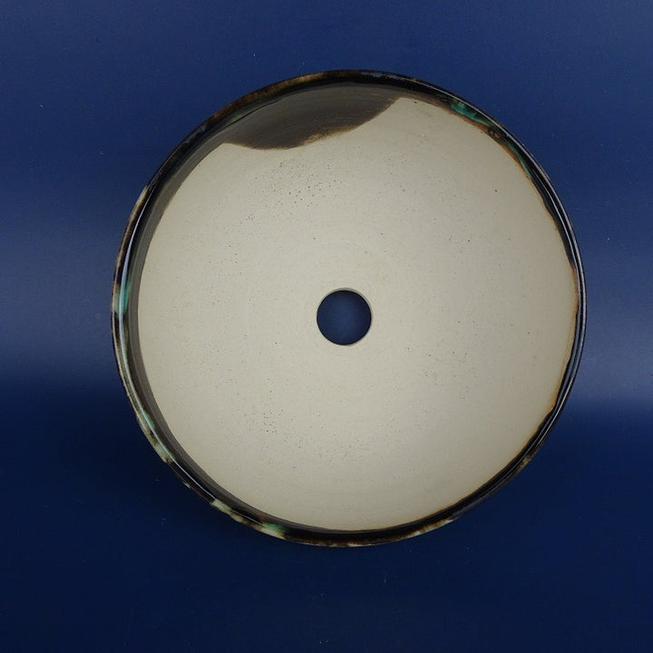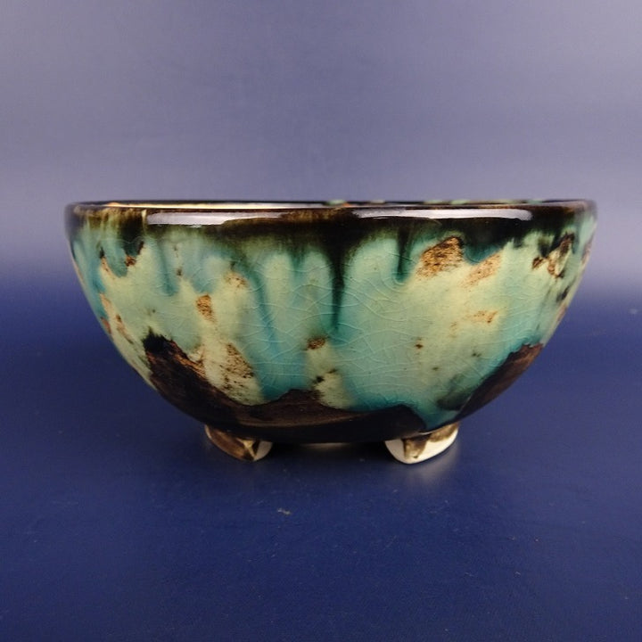 盆栽鉢 蝉山 小型 長辺 約12.2cm 丸鉢 釉薬 観賞用 新品 o1198426022