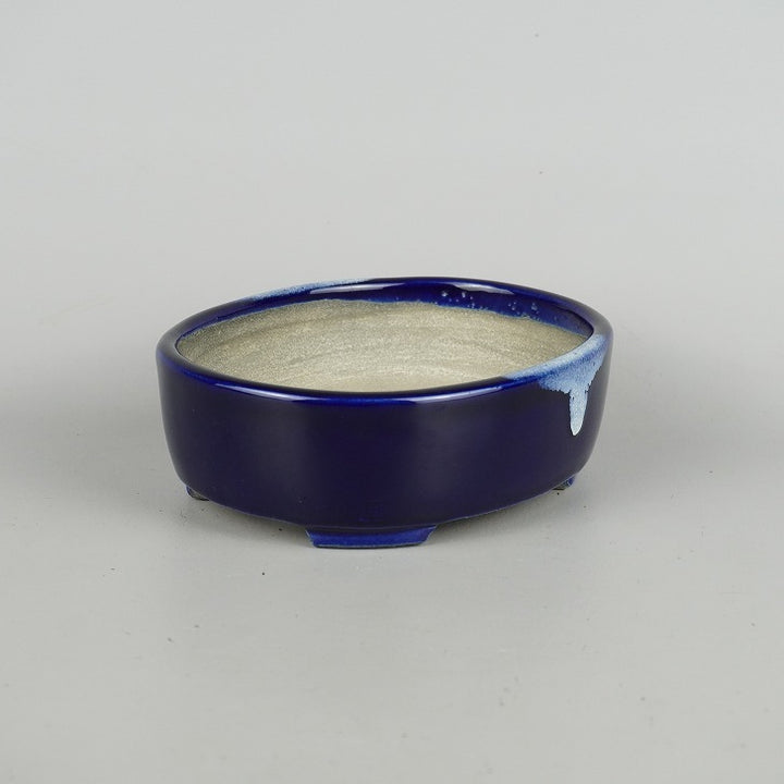 盆栽鉢 里美 寺畑陶園 小型 長辺 約16.3cm 楕円鉢 瑠璃 釉薬 新品 t1198414103