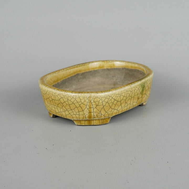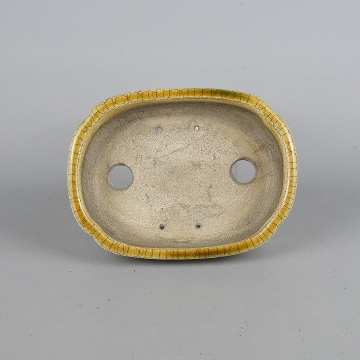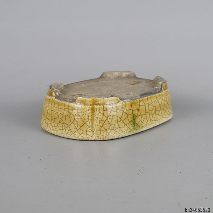 盆栽鉢 里美 寺畑陶園 小型 長辺 約16.3cm 浅 木瓜鉢 黄瀬戸 釉薬 新品 数量物 k1198411768