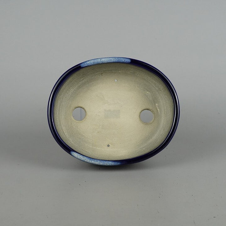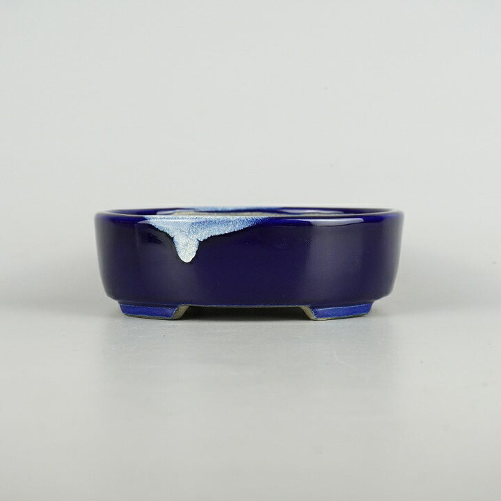 盆栽鉢 里美 寺畑陶園 小型 長辺 約16cm 楕円鉢 瑠璃 釉薬 新品 数量物 w1198414258
