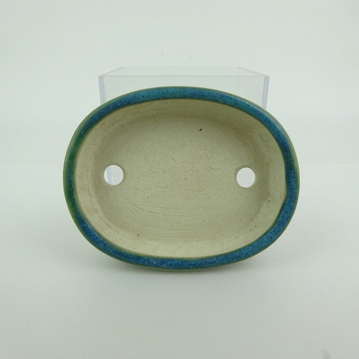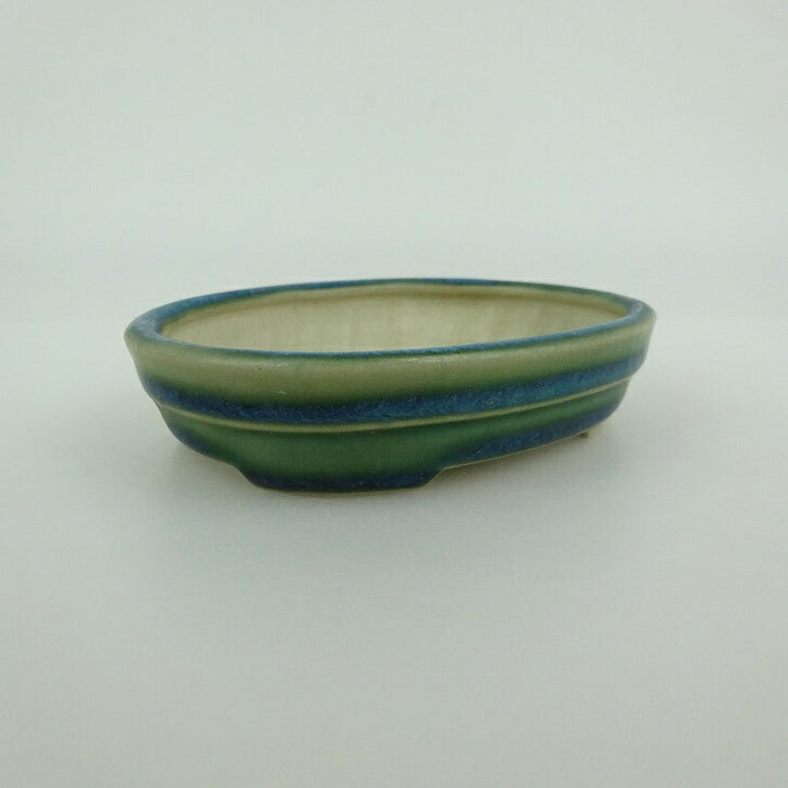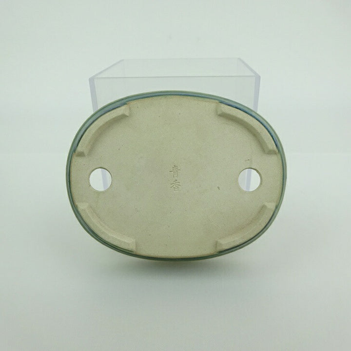 盆栽鉢 青香 小型 長辺 約10cm 楕円鉢 中帯 釉薬 f1198414507