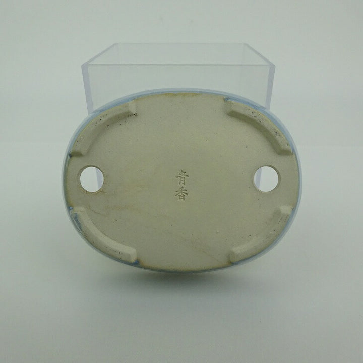 盆栽鉢 青香 小型 長辺 約10cm 楕円鉢 釉薬 e1198409742