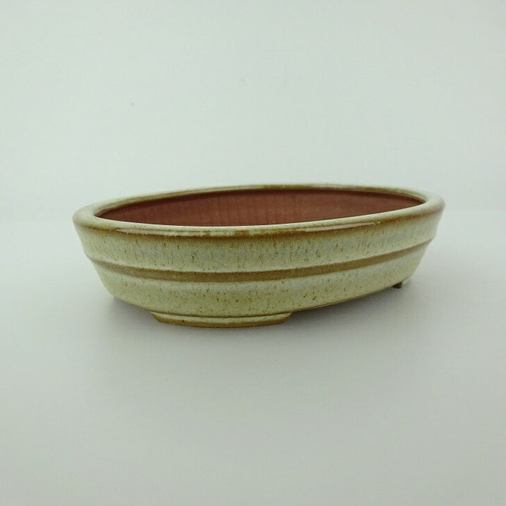 盆栽鉢 青香 小型 長辺 約12cm 楕円鉢 中帯 釉薬 s1198413183