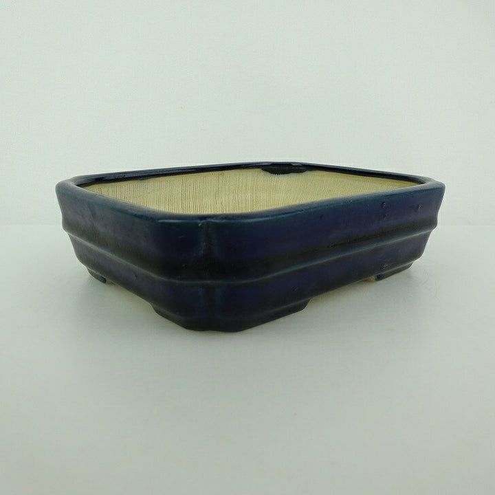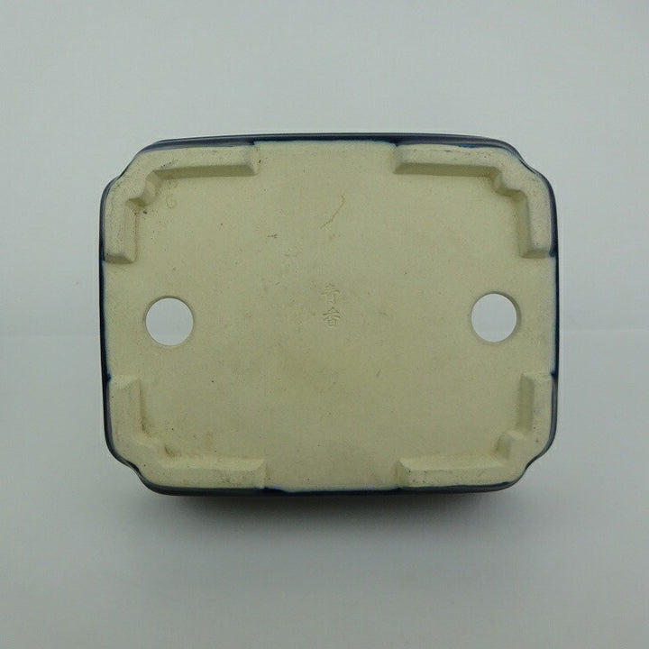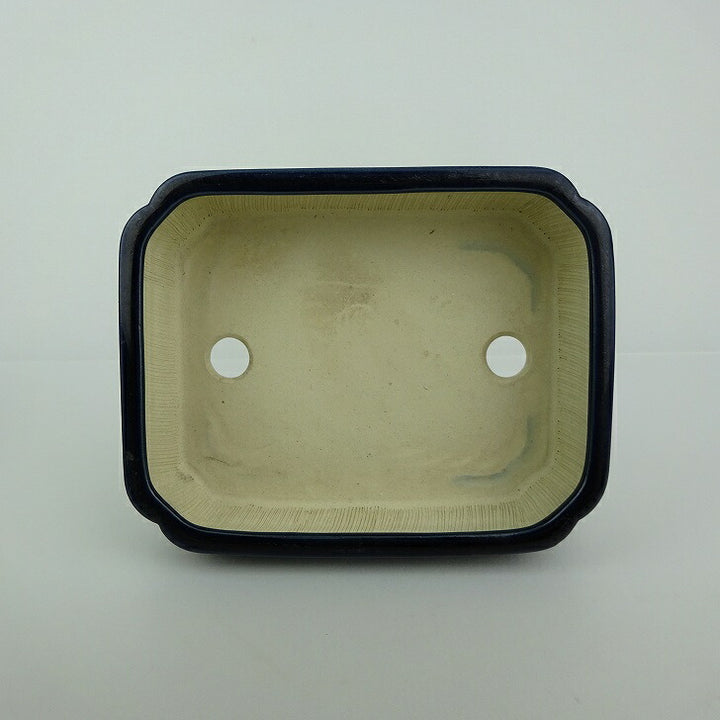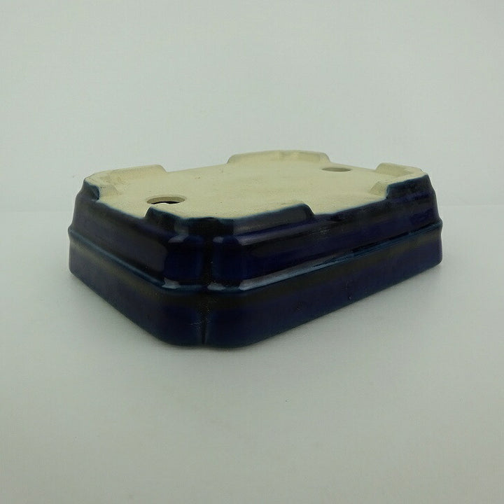 盆栽鉢 青香 小型 長辺 約14.5cm 長方鉢 隅入 中帯 釉薬 1198405276