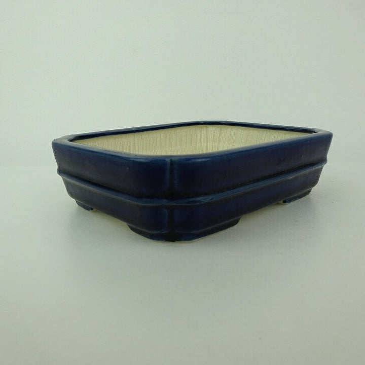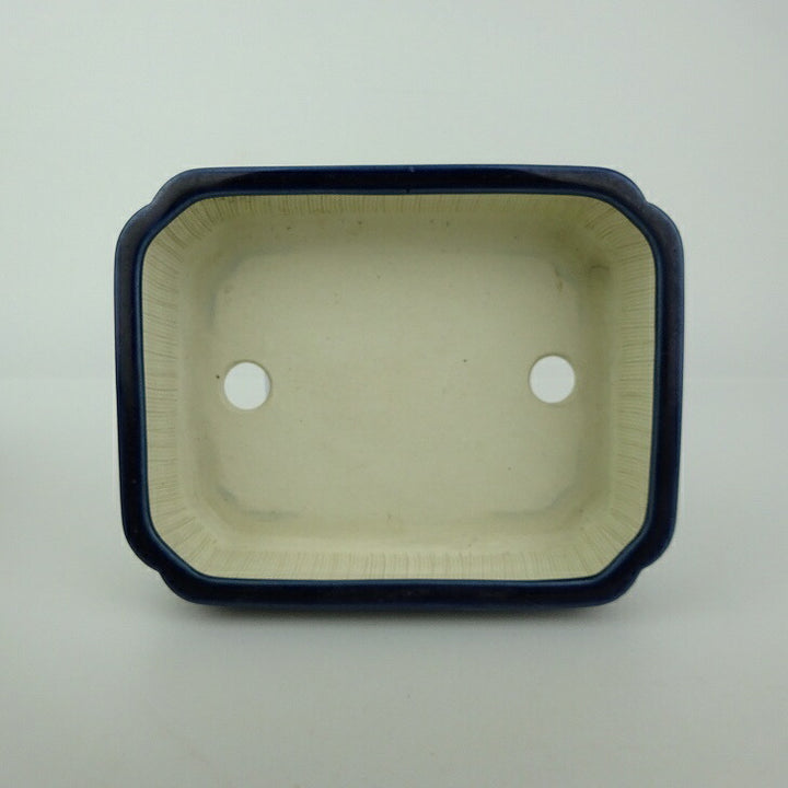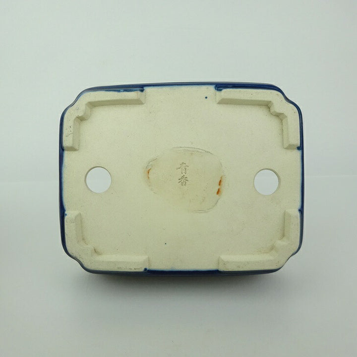 盆栽鉢 青香 小型 長辺 約14.8cm 長方鉢 隅入 中帯 釉薬 w1198406740