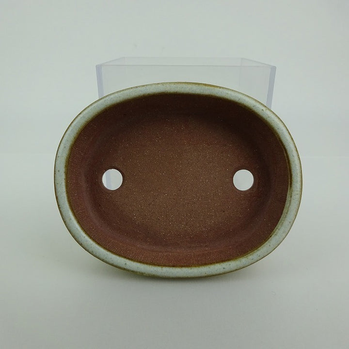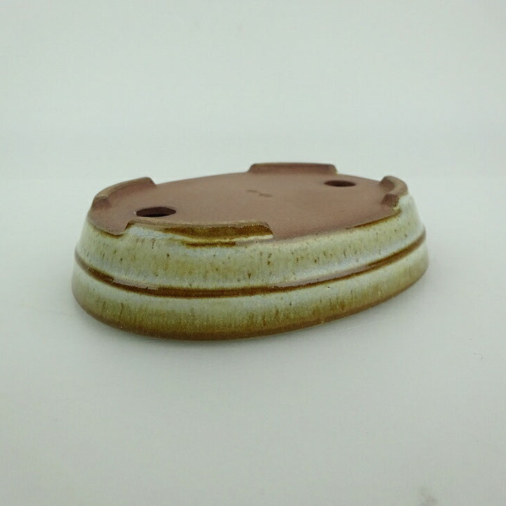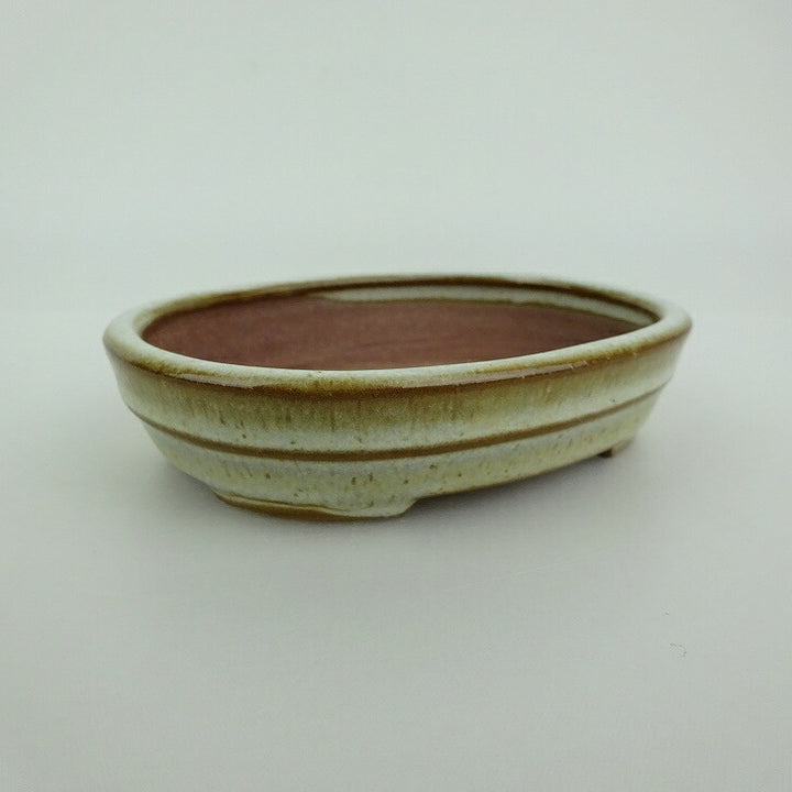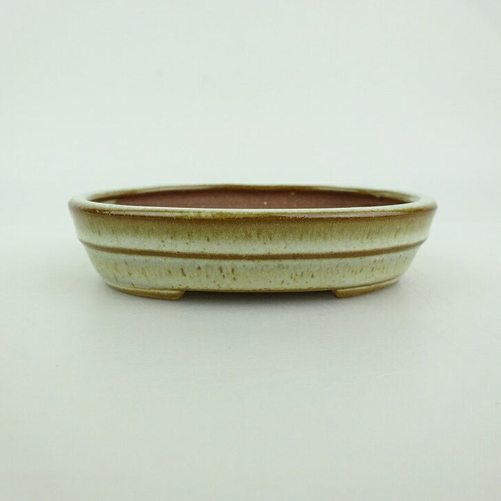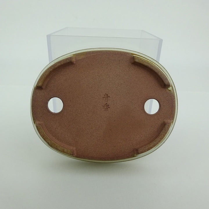 盆栽鉢 青香 小型 長辺 約9.8cm 楕円鉢 中帯 釉薬 h1198422479