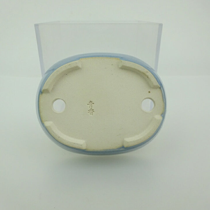 盆栽鉢 青香 小鉢 長辺 約8.5cm 楕円鉢 釉薬 x1198416509