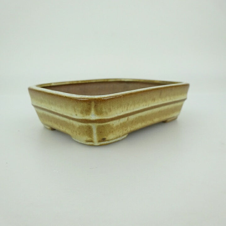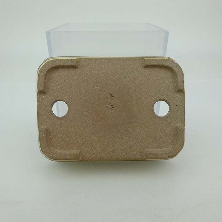 盆栽鉢 青香 小鉢 長辺 約 9.4cm 長方 鉢 中帯 隅入 釉薬 現品 品名青香...