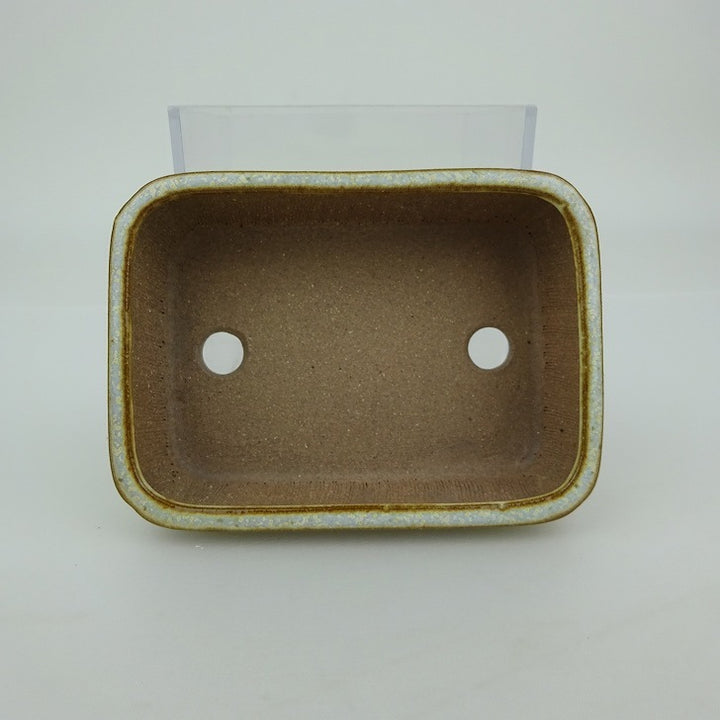 盆栽鉢 青香 小鉢 長辺 約9.4cm 長方鉢 中帯 隅入 釉薬 v1202720732