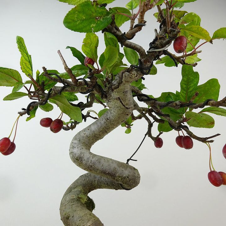 盆栽 深山 海棠 樹高 約 25cm かいどう カイドウ バラ科 落葉樹 観賞用 現品 ■植物ですので撮影時期や季節によって剪定などの手入れにより写真から変化がございます。撮影日をご確認のうえ、ご注文ください。 【深山海棠盆栽】 植物学的にはズミの総称。花は白色か淡紅色。 山野の日当たりの良い場所に生えており、別名をコリンゴともいいます。 名前の由来は「染み」で樹皮を黄色の染料にしたことによります。 ここでは、赤実のズミをミヤマカイドウ、黄実に...
