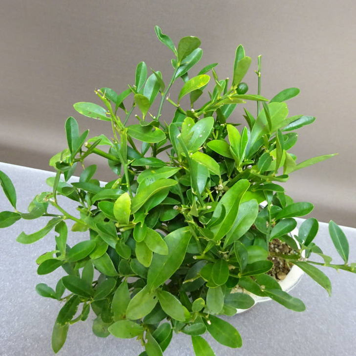 盆栽 金豆 樹高 約 19cm きんず キンズ マメキンカン ミカン科 キンカン属 常緑樹 観賞用 小品 現品 ■植物ですので撮影時期や季節によって剪定などの手入れにより写真から変化がございます。撮影日をご確認のうえ、ご注文ください。 ■翌年の実付きをよくするために1月末~2月にかけて摘果しています。お届けの商品には金豆の実がない場合がございます。 【金豆盆栽】 開花時期は、夏6月~8月頃にトゲのある枝の脇に花芽が複数つき小さな白い五弁花を咲か...