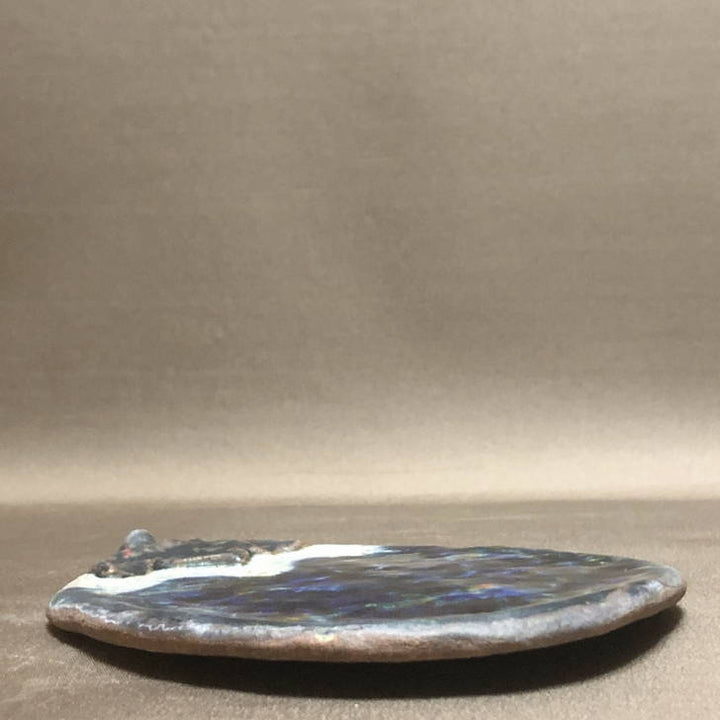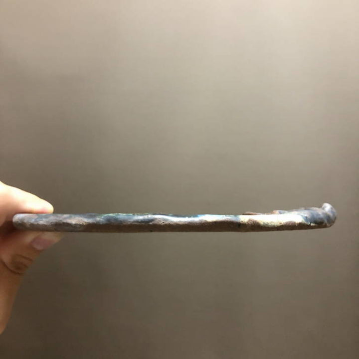 陶板 文山 越前文山 花台 長辺 約16cm なす型 飾台 置物台 花飾 釉薬 陶製 盆栽台 現品 新品 送料無料 越前文山 本名 伊藤薫 1973年に鯖江園芸を開園する。 地元に伝わる越前焼に則って独自の作風を確立し、手びねりによる焼締の他、辰砂などの釉薬や象嵌を施したものがある。...