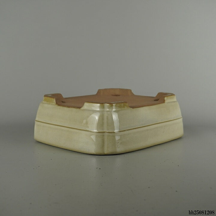 盆栽鉢 山房造 中型 長辺 約 24.5cm 長方鉢 隅入 中帯 釉薬 新品 x1202076094