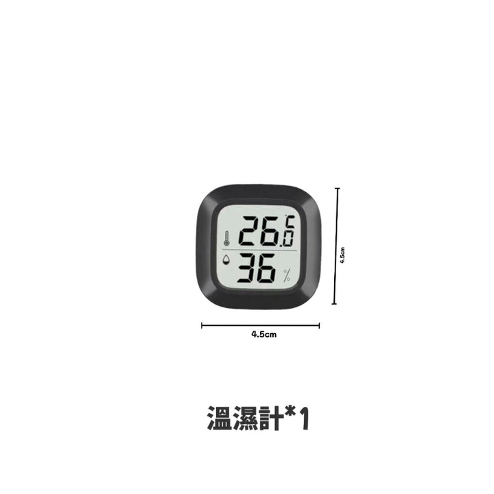 - 溫濕計:過高過低的溫度和濕度都會導致生態缸内的動植物活躍度下降,甚至是生病,所以各位安裝一個溫濕計是必不可少的