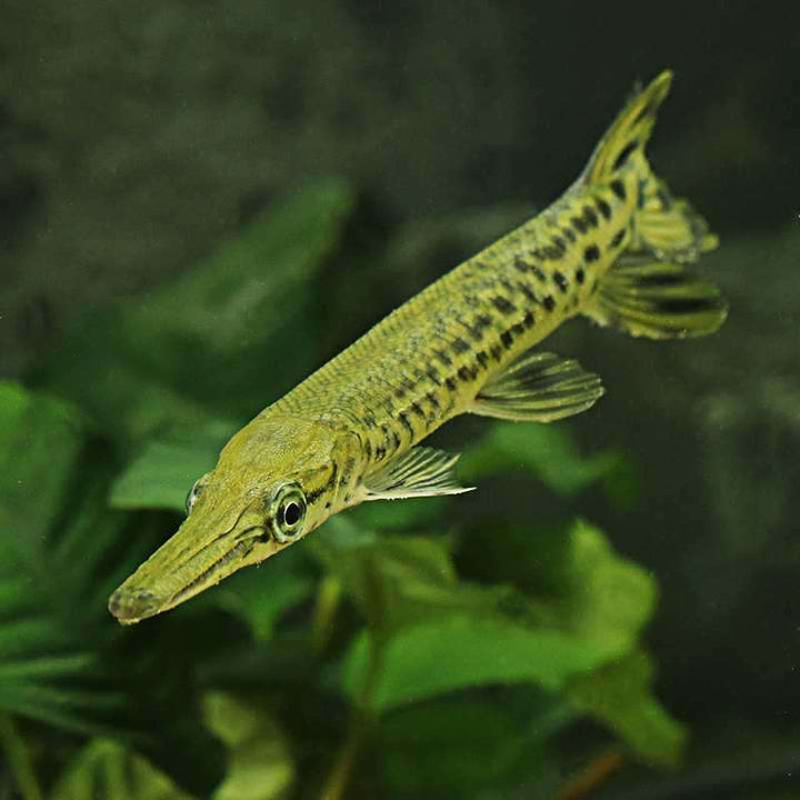 尖嘴鱷是雀鱔中最常見的一種。體形怪異,頗具活化石的風格。體長圓筒形。嘴部向前突出較長,扁平似鴨嘴,上下頜骨板堅硬,中間有堅硬的牙齒,又似鱷魚嘴。身體背部中央由眼至尾部滿佈縱列狀的深色斑紋。皮膚有硬鱗覆蓋,皮堅鱗厚。背鰭後移到尾柄處,與臀鰭上下對稱。尾鰭上有黑色條紋。
