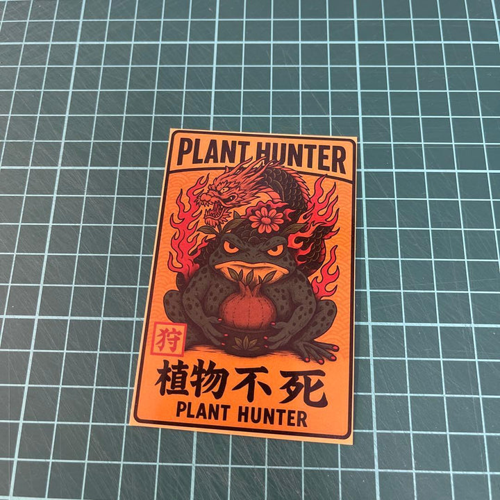 PLANT HUNTER LAB オリジナルステッカーシリーズ。 「PLANT HUNTER GOD」篇——自由蛙神(FROG DIVINE)。 炎を背負い、塊根の果実を抱える蛙神。 その背後に昇る龍は「覚醒と再生」を象徴し、 地中に眠る根の力を守護する存在として描かれています。 自由蛙神は、PLANT HUNTER世界観における 「創造と破壊の神」——火と根の境界を超える存在。...