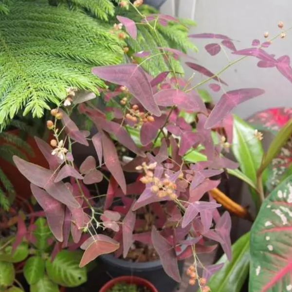 紅蜻蜓飛機草是一種來自東南亞的罕見熱帶植物,葉子像飛翔的蝴蝶!這種不尋常的物種有斑紋的蝙蝠狀葉子,呈引人注目的紫紅色,十分特別。
