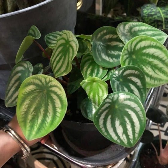 Watermelon Peperomia is an easy to grow variety with green and silver foliage, similar to the pattern found on the skin of a watermelon.