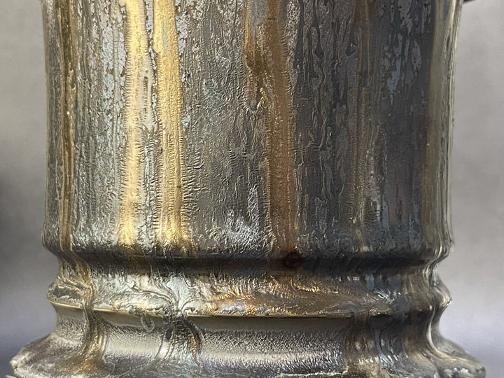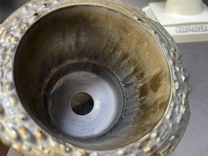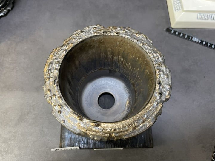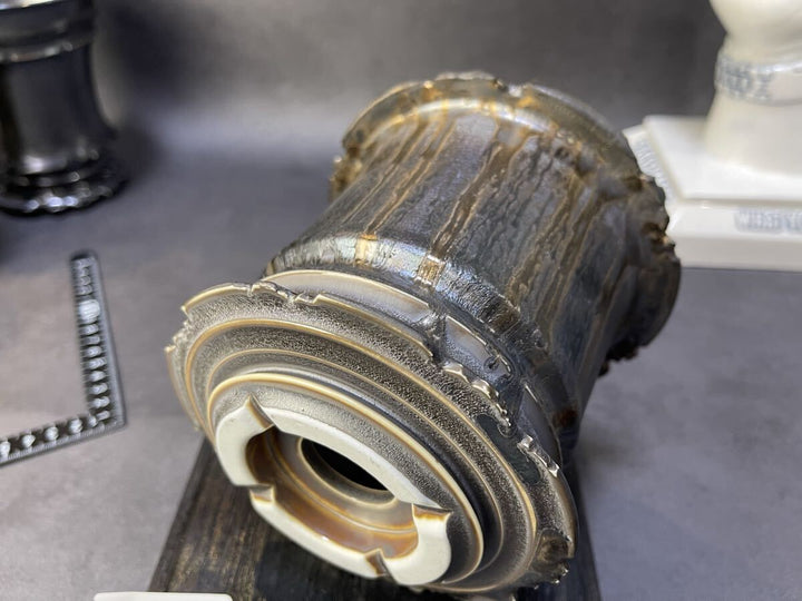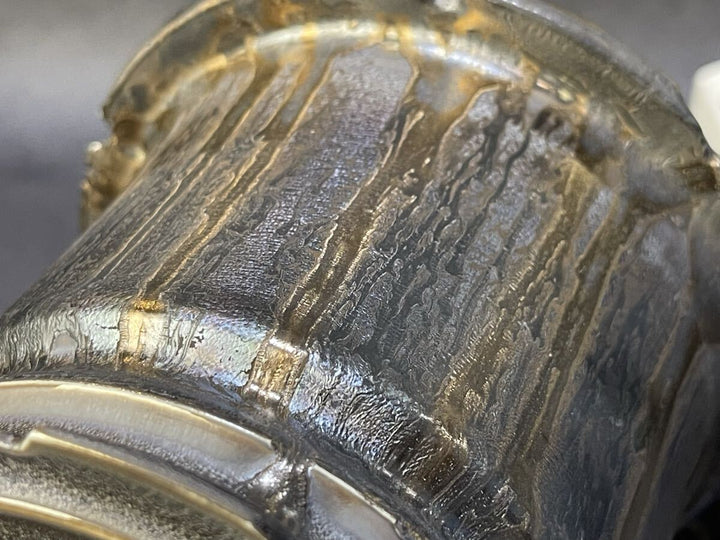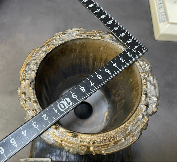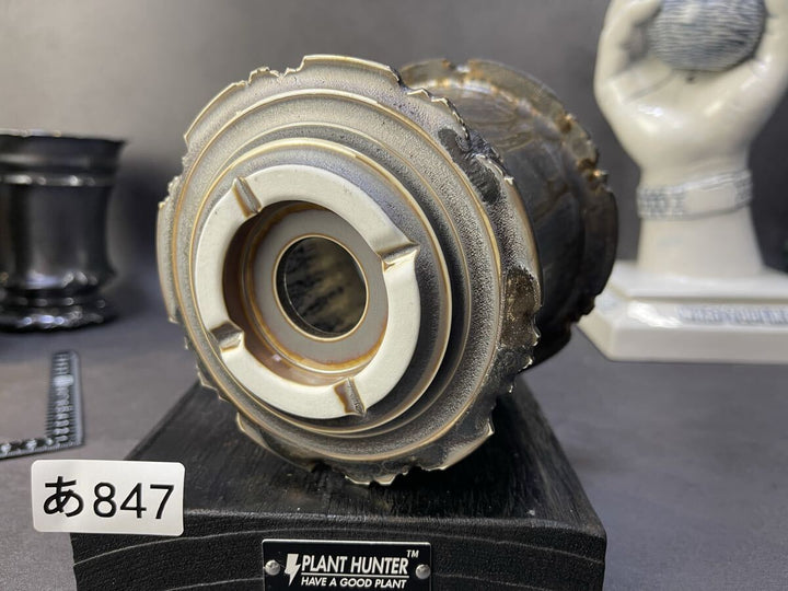 【PLANT HUNTER|熔黒金 - MELTED BLACK GOLD SERIES】 鉄灰の地肌に金属光沢がゆらめき、 口縁から溶け落ちたような金色の釉流が 熔岩のように固まった、迫力ある一点。 外側は火山釉特有の爆裂質感が重なり、 下部の多層リムは鍛造金属が冷えて固まったかのような表情。 内側まで金属霧化釉で仕上げられ、 作品全体が「溶けた鉄の瞬間」を封じ込めたような存在感を放ちます。...