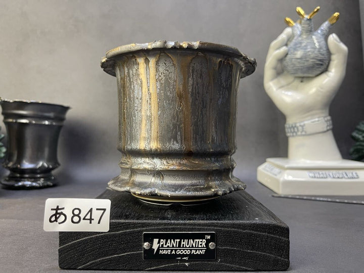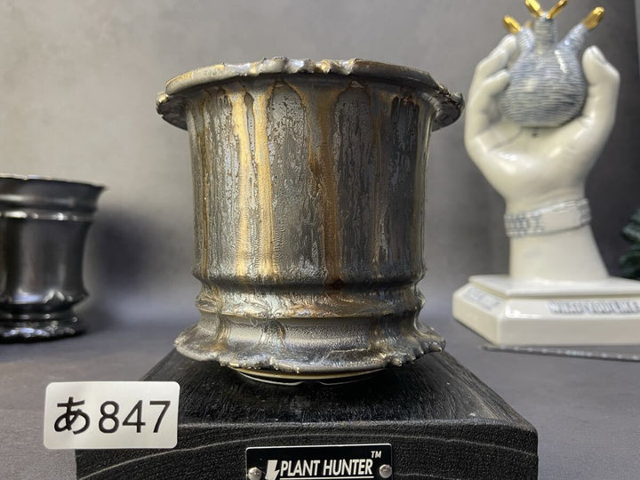 あ847 熔黒金 L Hand MADE 植木鉢 陶器 検 塊根植物 アガベ パキプス invisible ink raw life factory SRL 伝市鉢 カタチ製作所 グラキリス f1212082306