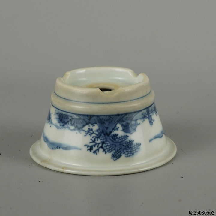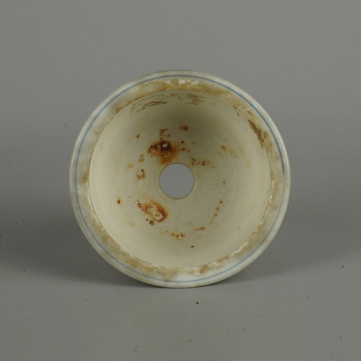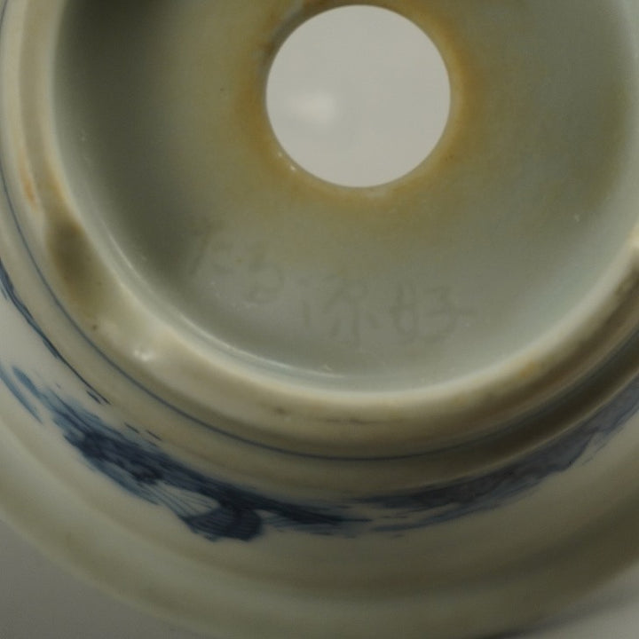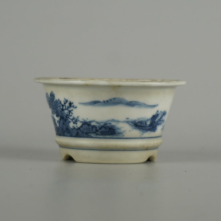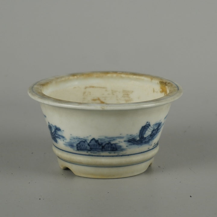 中古盆栽鉢 たる源好 小鉢 長辺 約 7.5cm 丸鉢 外縁 下帯 人物 山水図 鑑賞 観賞用 中古鉢 f1212041407