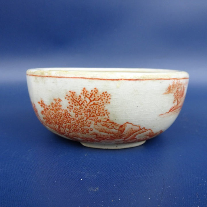 【中古】盆栽鉢 宮崎 一石 小鉢 長辺 約8cm 丸鉢 赤絵 風景画 箱付 布付 現品 中古鉢 商品名一石(箱付・布付) サイズ高さ 約3.3センチ...