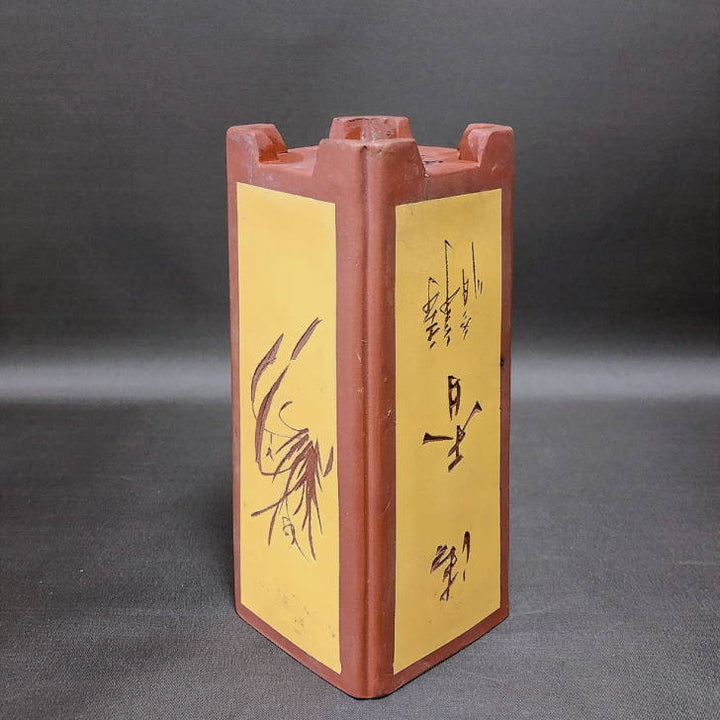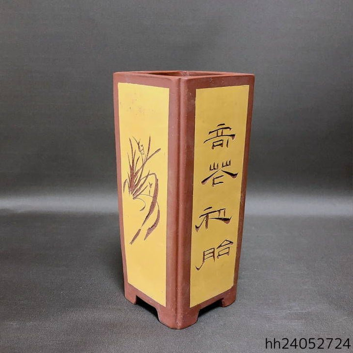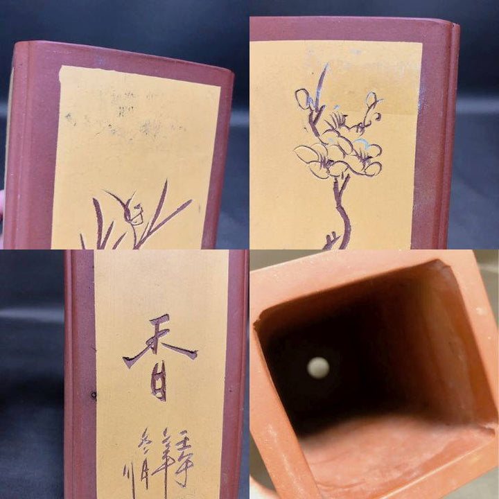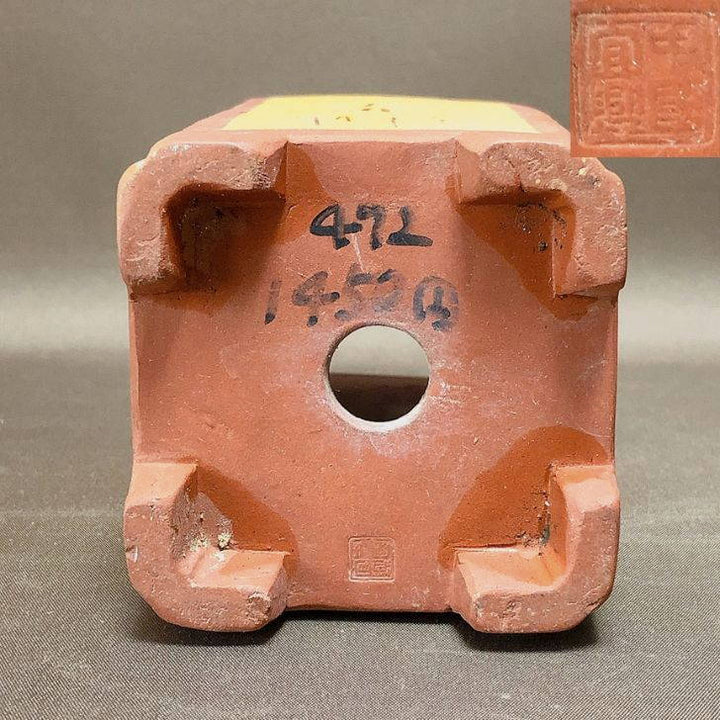 盆栽鉢 中国宜興 小型 高さ 約20cm 下方 正方鉢 隅入 釘彫 花 泥鉢 中国鉢 観賞用 現品 中古鉢 品名中国宜興...