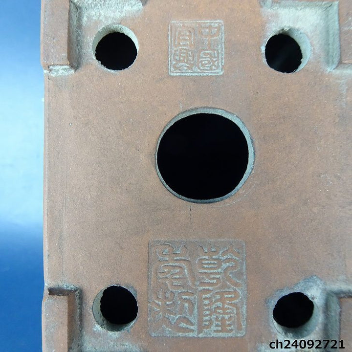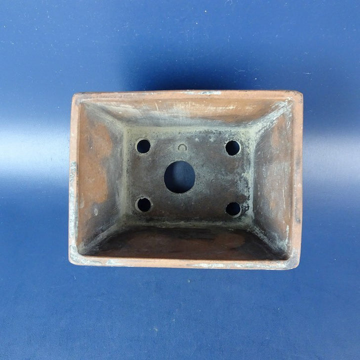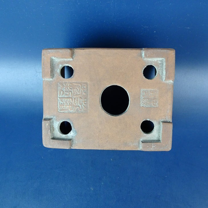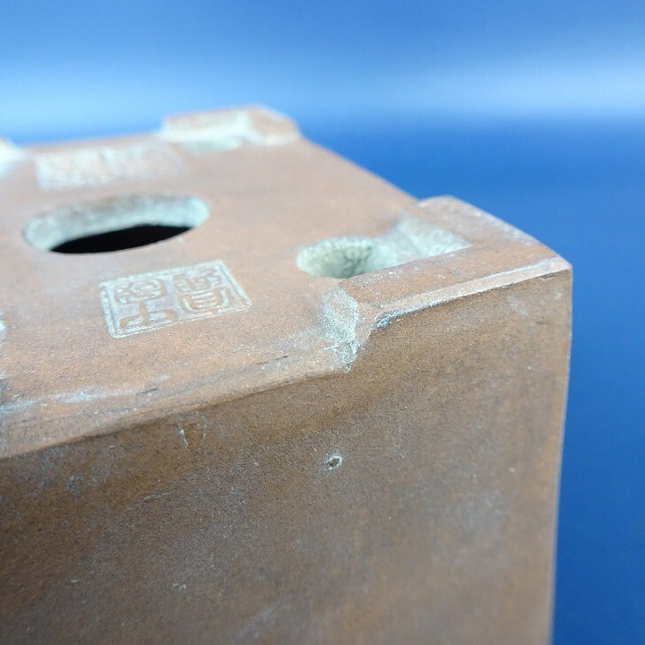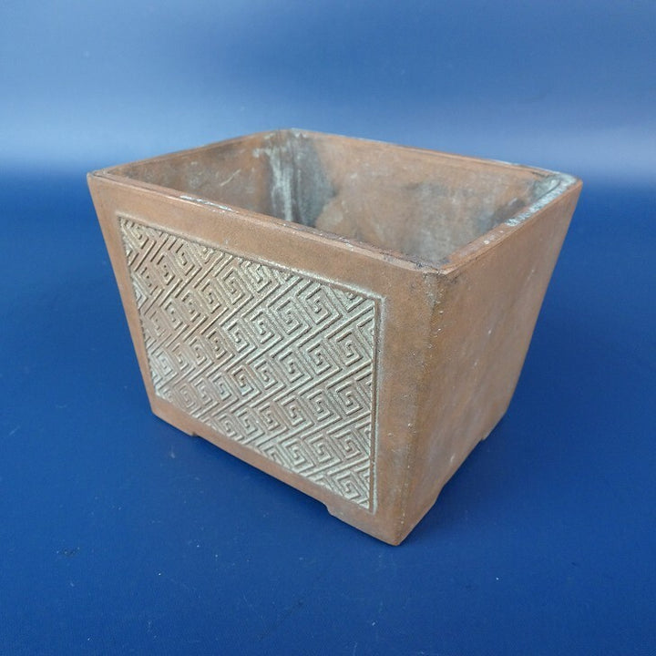 【中古】盆栽鉢 中国宜興 w落款 小鉢 長辺 約9cm 長方鉢 釘彫 模様 泥鉢 現品 中古鉢 品名中国宜興(w落款)...