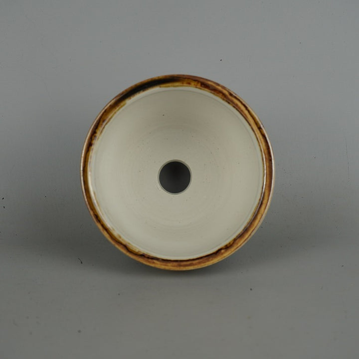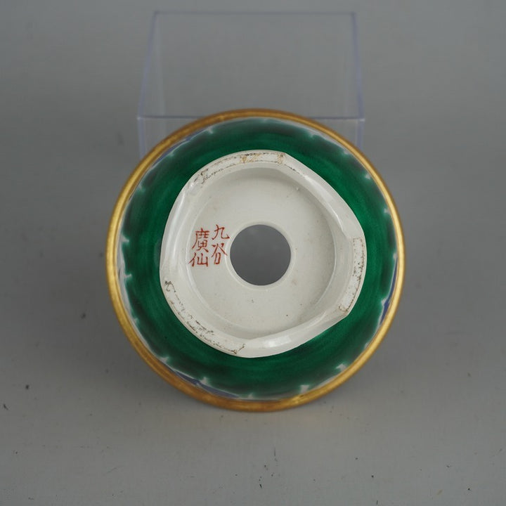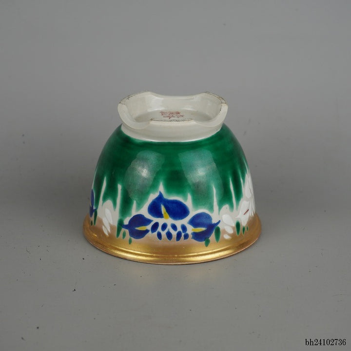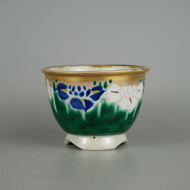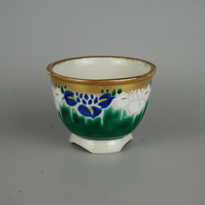 中古盆栽鉢 九谷廣仙 小型 長辺 約10.5cm 丸鉢 外縁 色絵 花 はな ハナ 観賞用 中古鉢 h1198425430