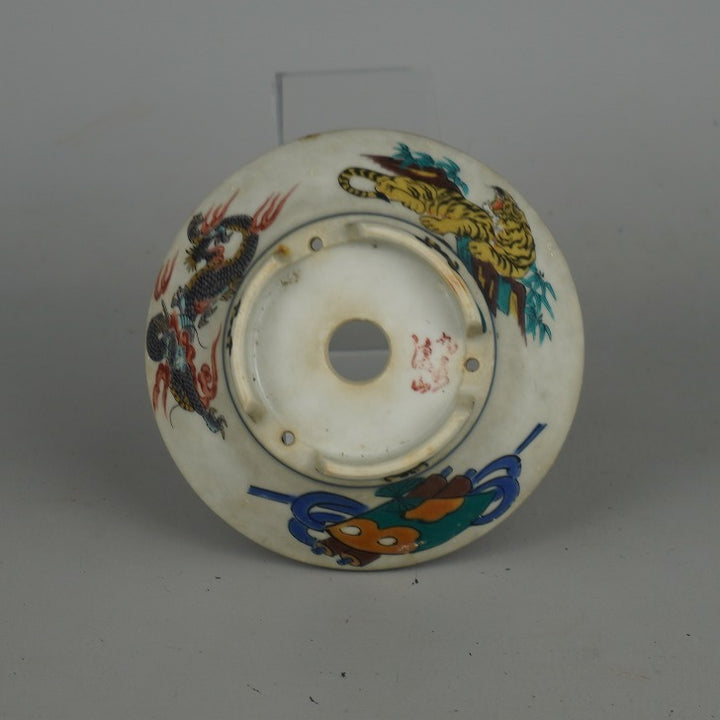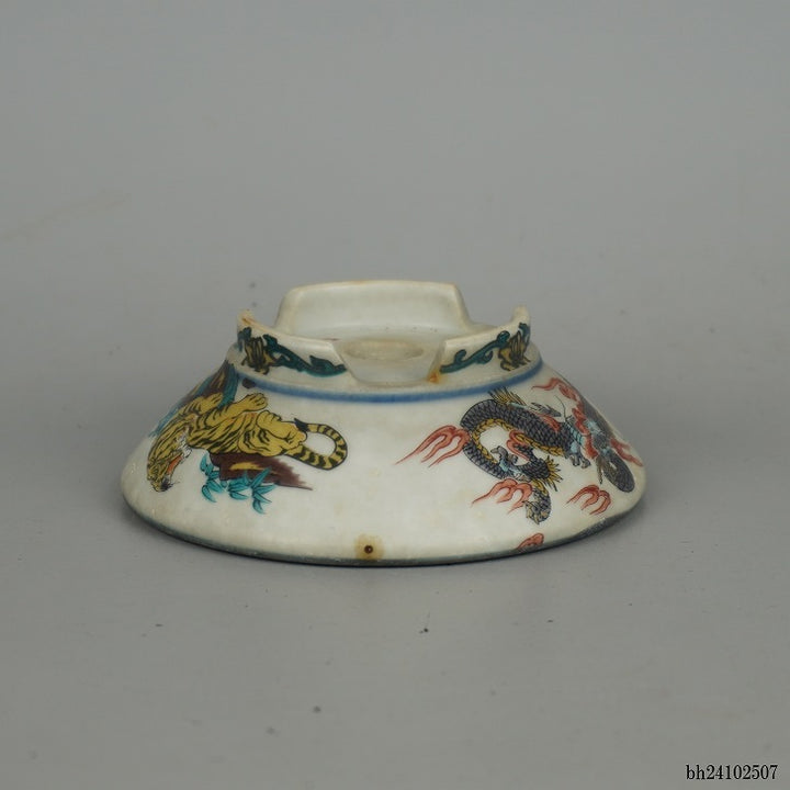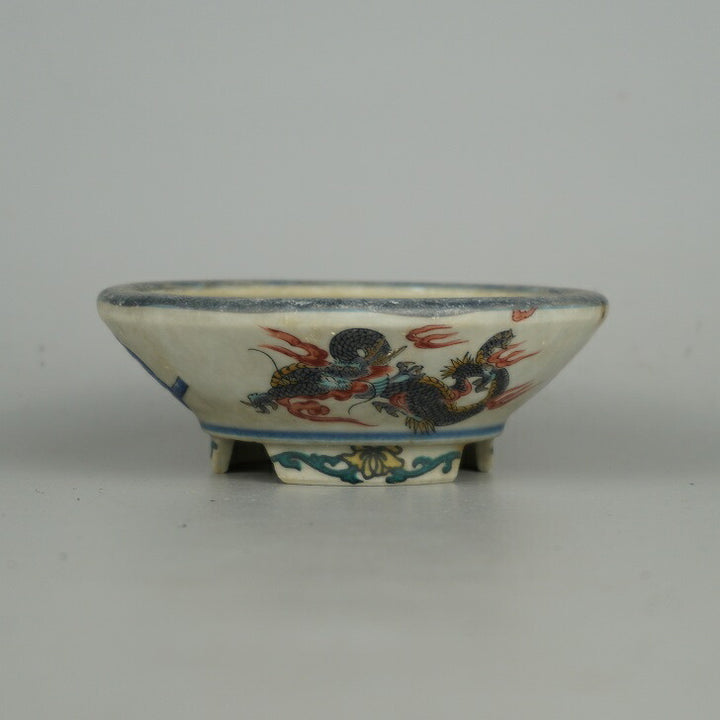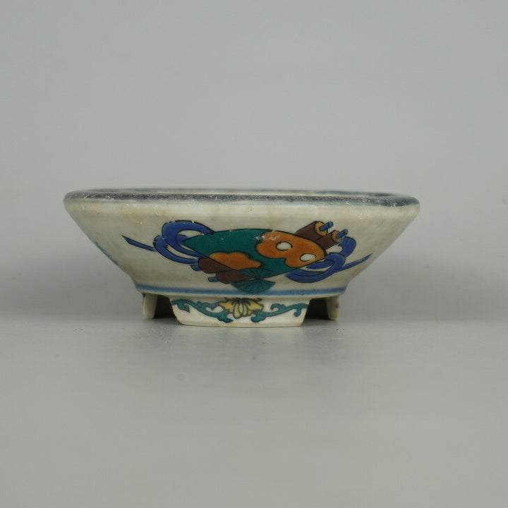中古盆栽鉢 九谷 小型 長辺 約 10cm 丸鉢 色絵 龍 虎 リュウ トラ 観賞用 中古鉢 q1198419351