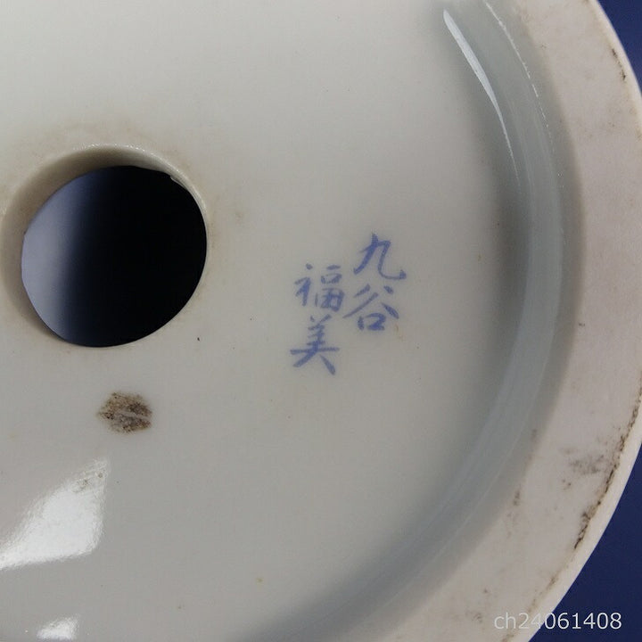 中古盆栽鉢 九谷 福美 小型 長辺 約12.5cm 丸鉢 色絵 花 ユリ 百合 観賞用 中古鉢 m1198406935