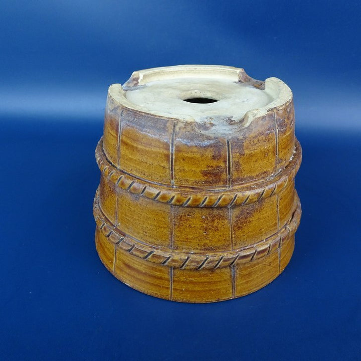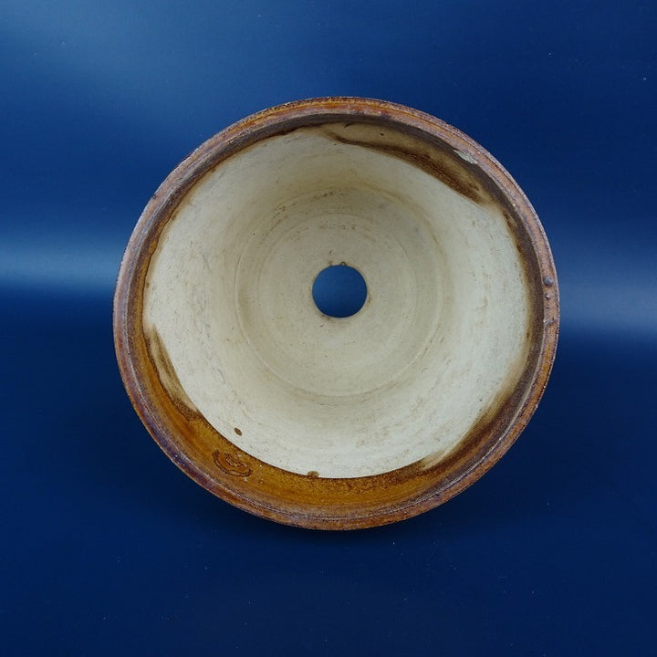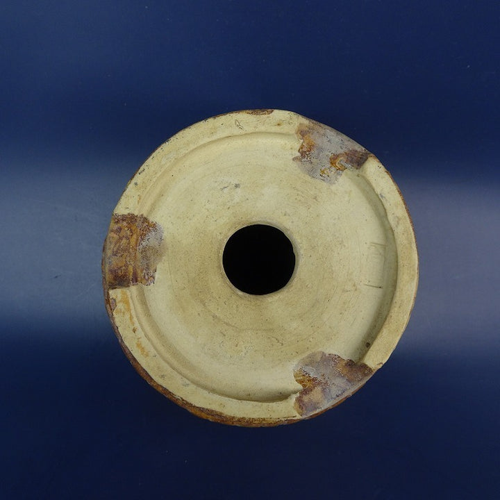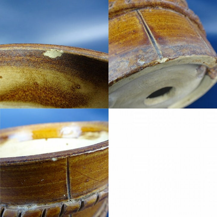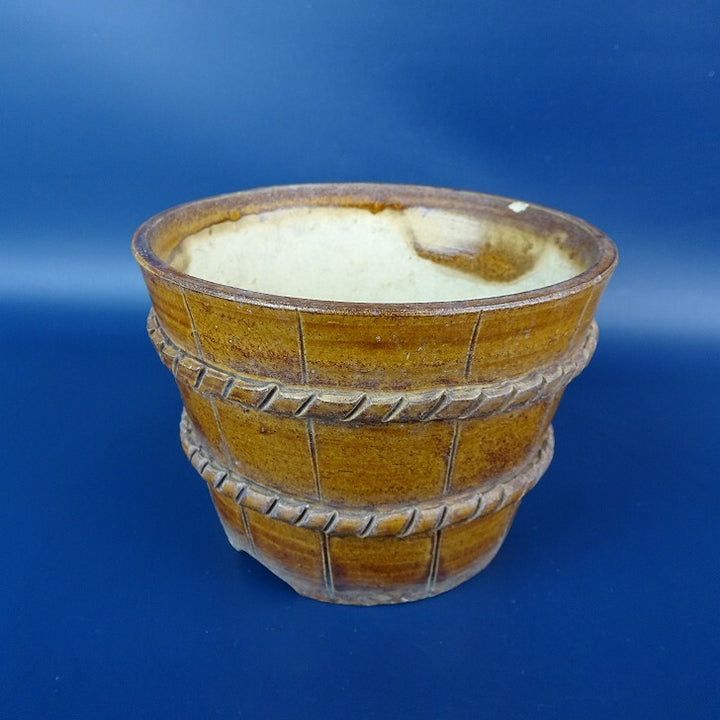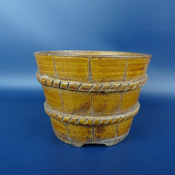 中古盆栽鉢 合澤 小型 長辺 約13.8cm 丸鉢 縄 樽型 釉薬 中古鉢 1198405818
