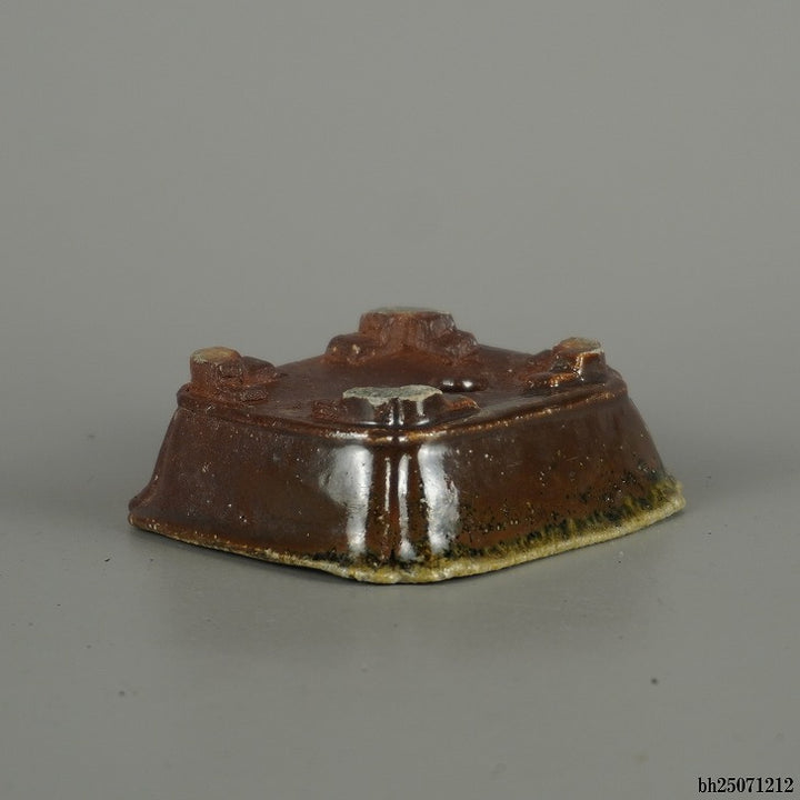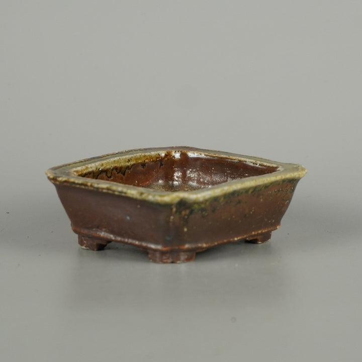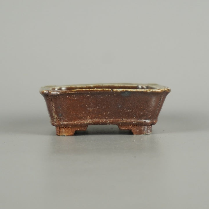 盆栽鉢 宇野 登 寿老庵 小鉢 長辺 約 7.5cm 長方鉢 隅入 下帯 釉薬 共箱 共布 鑑賞 観賞用 現品 中古鉢 品名宇野登(共箱・共布付)...