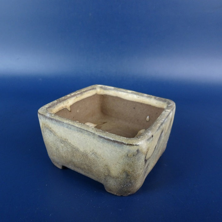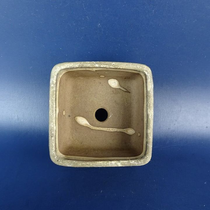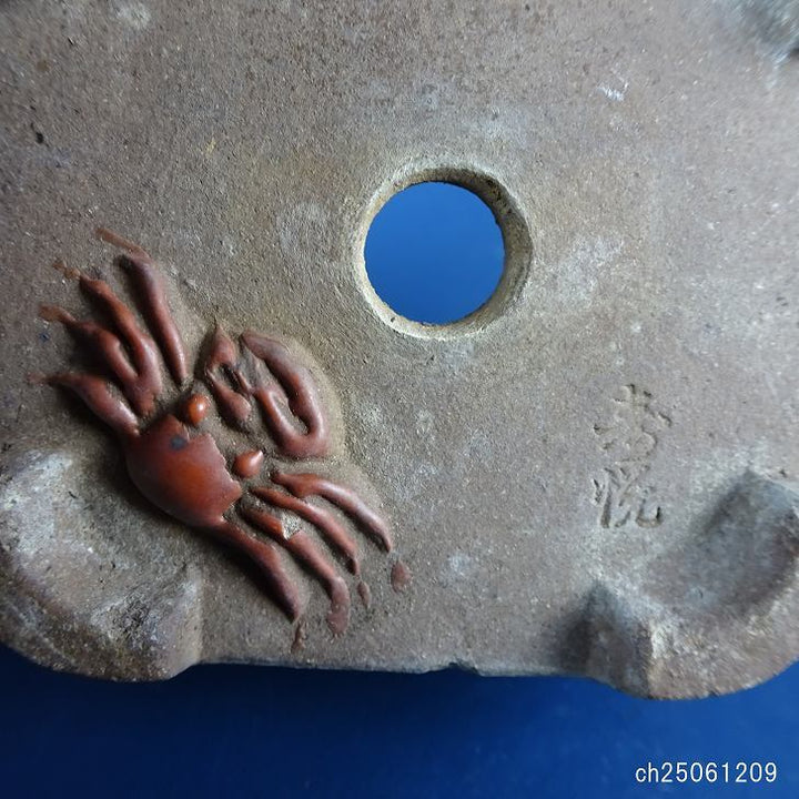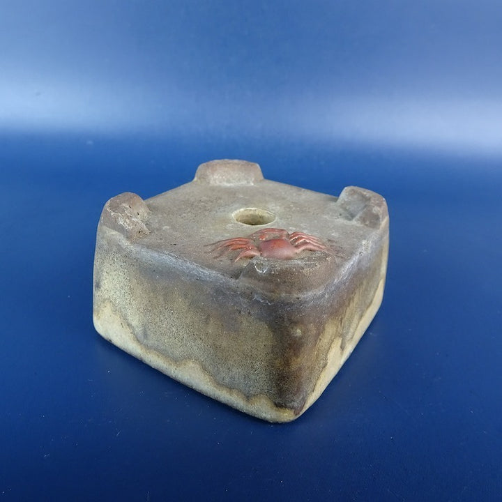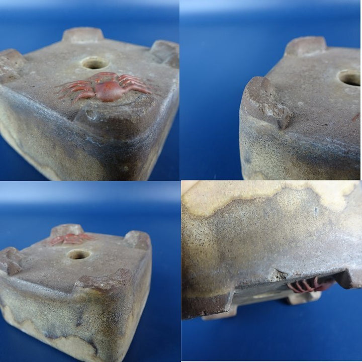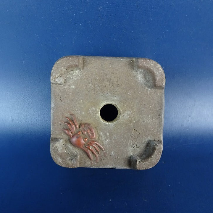 中古盆栽鉢 寿悦 小鉢 長辺 約 6.3cm 正方鉢 浮彫 蟹 カニ 釉薬 中古鉢 f1198407046