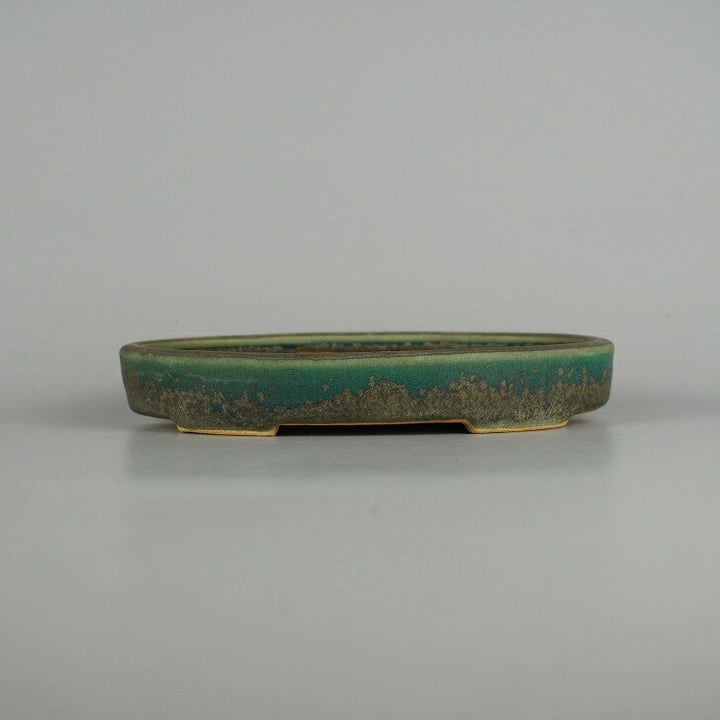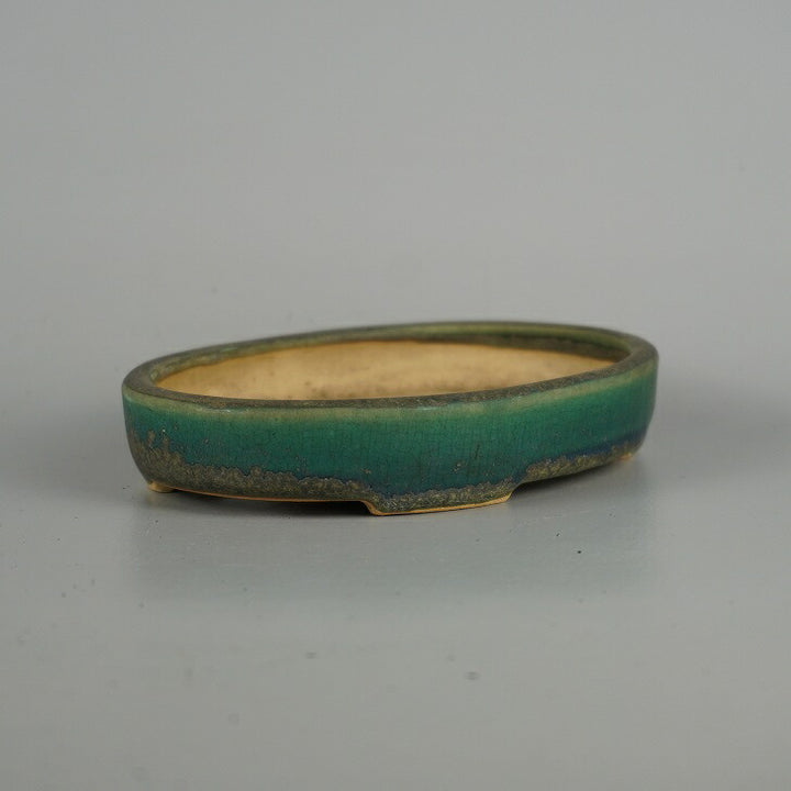 中古盆栽鉢 常滑 一弘造 渡辺一弘 小型 長辺 約 17.2cm 楕円鉢 釉薬 中古鉢 f1198415654