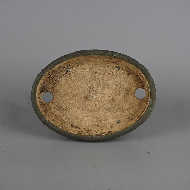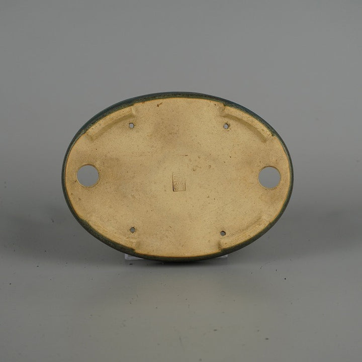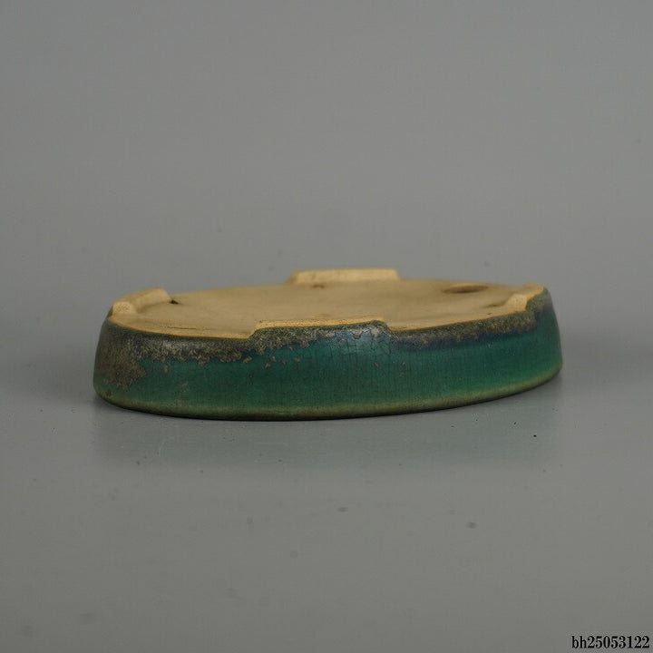 盆栽鉢 常滑 一弘造 渡辺一弘 小型 長辺 約 17.2cm 楕円鉢 釉薬 現品 中古鉢 本名:渡辺一弘 父、渡辺正山のもとで修業しながら釉薬を研究し、昭和53年頃から小品樹鉢焼成をはじめる。 タタラづくり主体の釉色樹鉢や釉色水盤、釉色は、織部、均釉、白交趾、黄交趾、瑠璃釉などが主でその中間色もあり多彩である。泥色、小品、大物の盆器を鉢・水盤ともつくる常滑の盆器作家。 作家名は「かずひろ」と読みますが、一般的に「いっこう」と訓読みされている。...