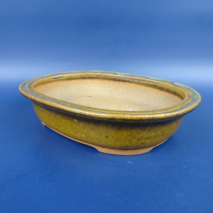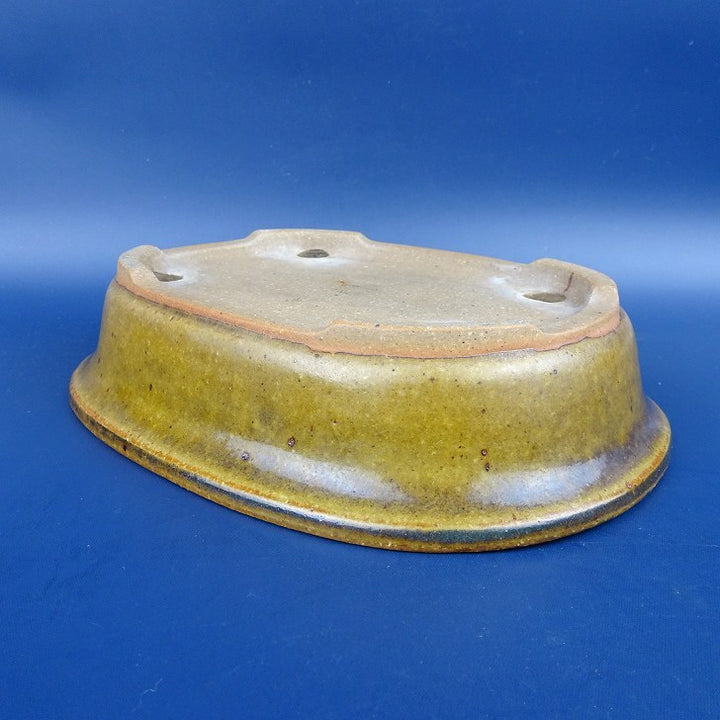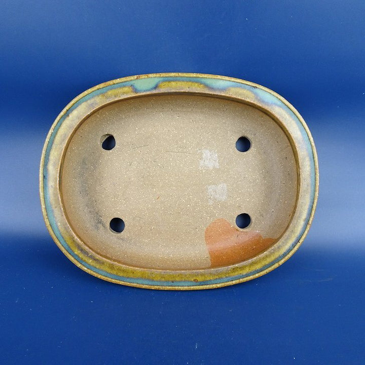 中古盆栽鉢 常滑 一陶園 小型 長辺 約19.4cm 楕円鉢 外縁 釉薬 中古鉢 v1198439427