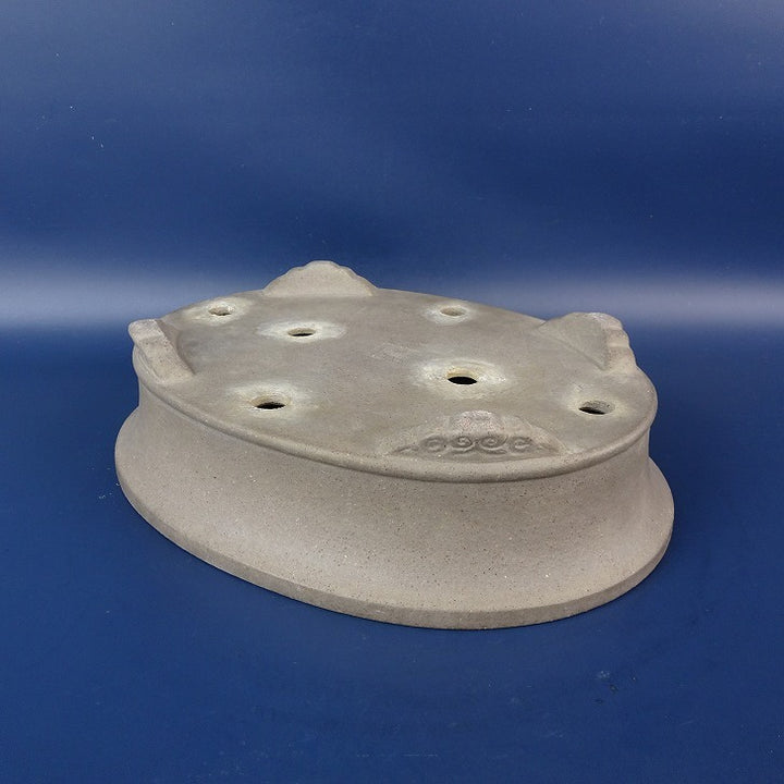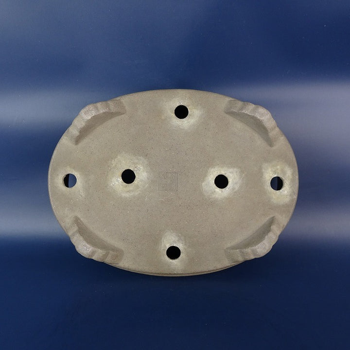 中古盆栽鉢 常滑 佳山園 中型 長辺 約 25.2m 楕円鉢 外縁 雲足 下帯 泥物 中古鉢 p1198414946