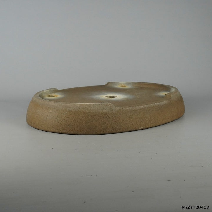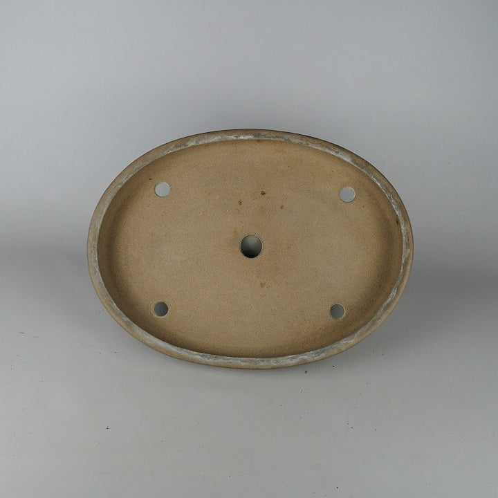 中古盆栽鉢 常滑 喜仙 中型 長辺 約37.8cm 楕円鉢 泥物 中古鉢 w1198411213