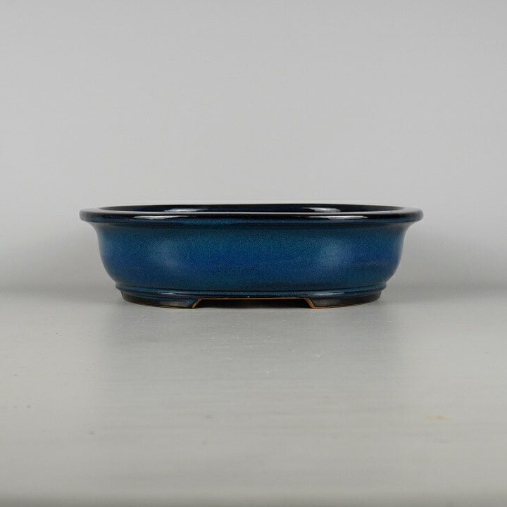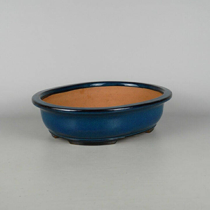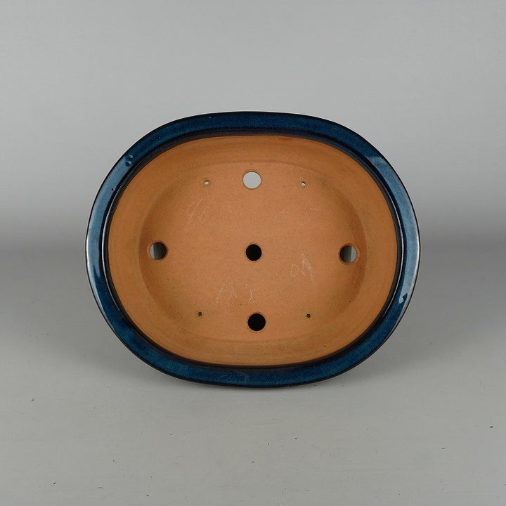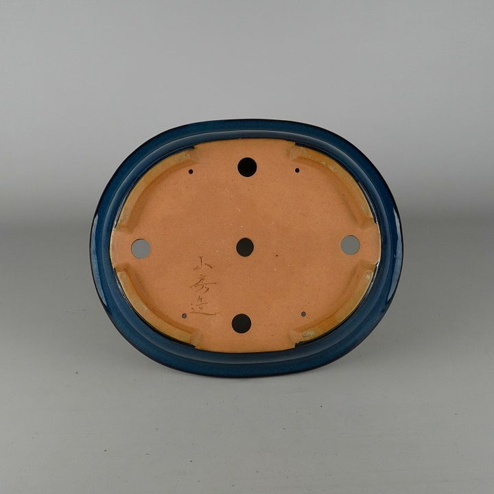 中古盆栽鉢 常滑 山房 中型 長辺 約31.5cm 楕円鉢 下帯 瑠璃 釉薬 中古鉢 e1198411130
