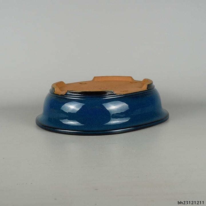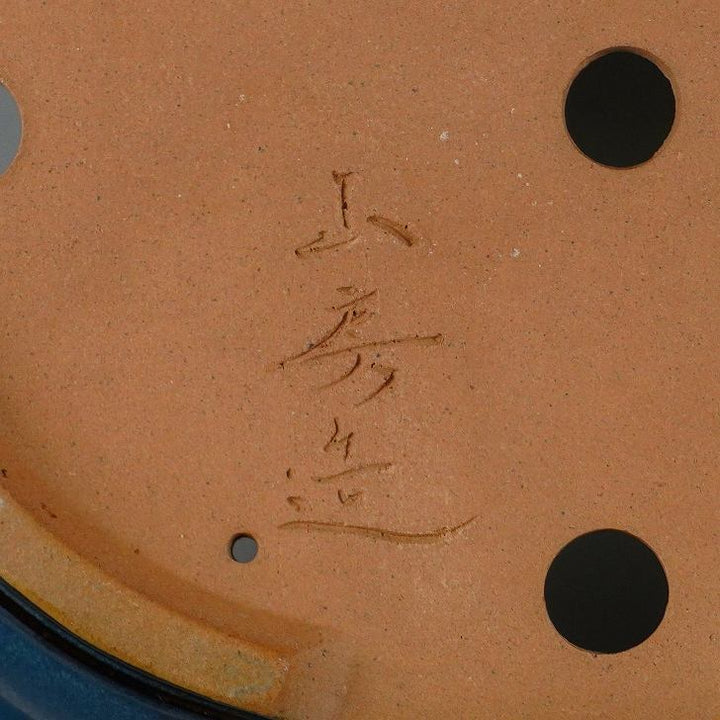 盆栽鉢 常滑 山房 中型 長辺 約31.5cm 楕円鉢 下帯 瑠璃 釉薬 現品 中古鉢 品名山房...