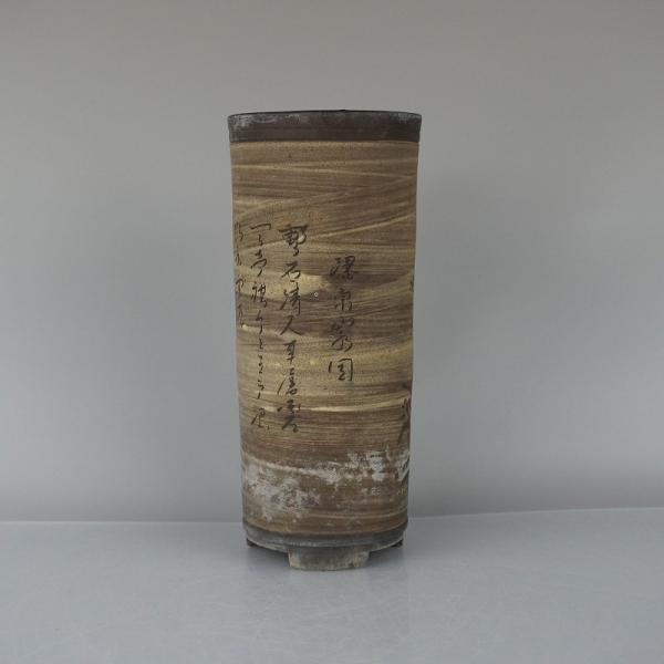 中古盆栽鉢 常滑 泥珠 中型 高さ 約18.5cm 下方 丸鉢 彫入 山水図 漢文 中古鉢 p1198414490