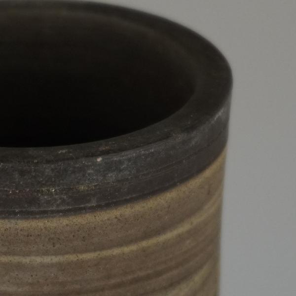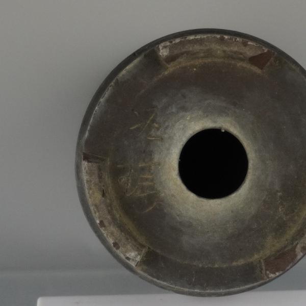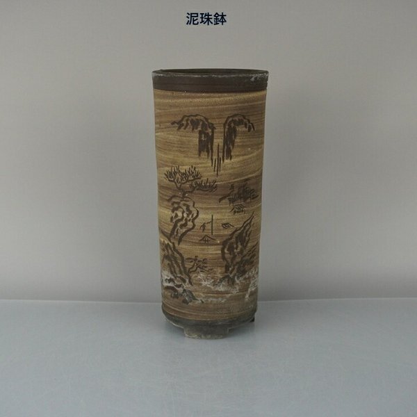 盆栽鉢 常滑 泥珠 中型 高さ 約18.5cm 下方 丸鉢 彫入 山水図 現品 中古鉢 品名泥珠...