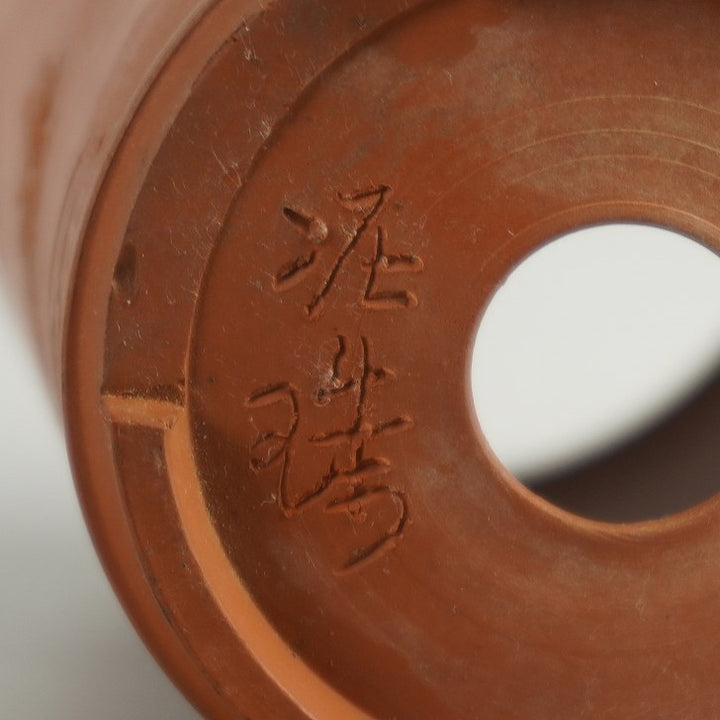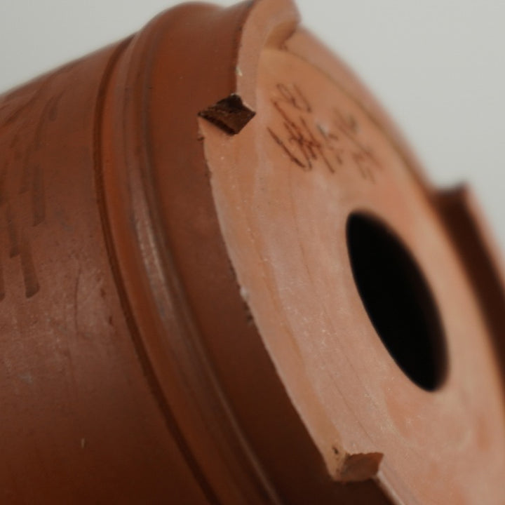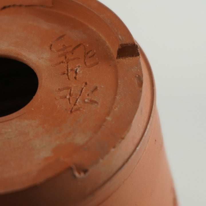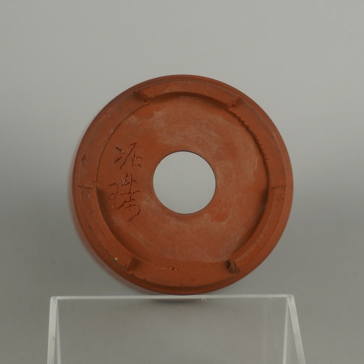 盆栽鉢 常滑 泥珠 小型 高さ 約 11.6cm 下方 丸鉢 彫入 山水図 泥物 鑑賞 観賞用 現品 中古鉢 品名泥珠...