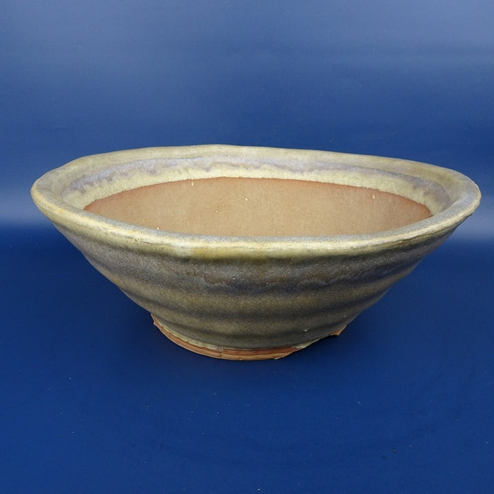 【中古】盆栽鉢 常滑 竜岳 中型 長辺 約25.5cm 丸鉢 釉薬 現品 中古鉢...