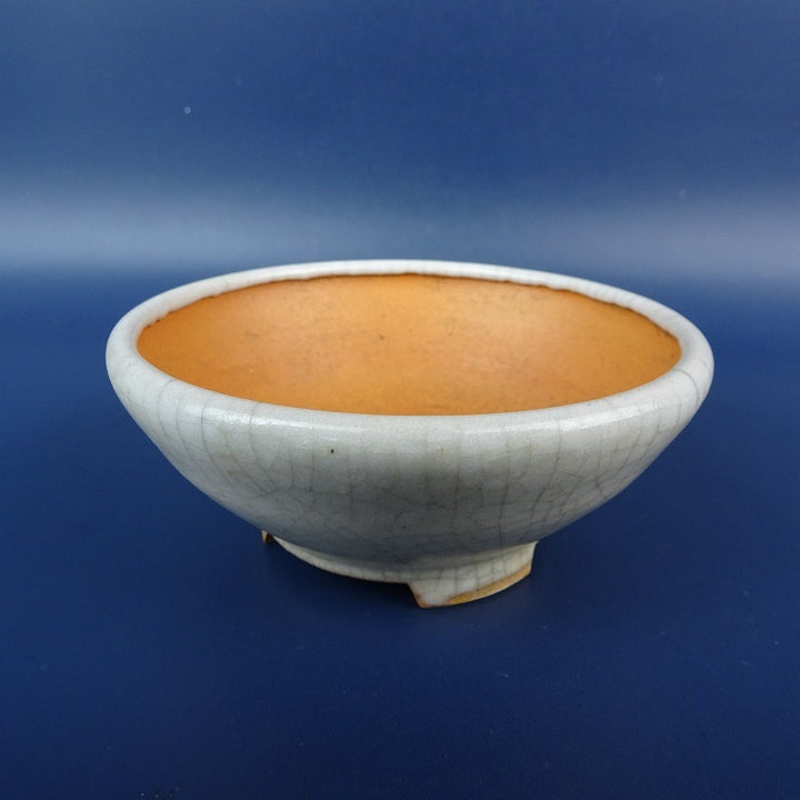 中古盆栽鉢 平安香草 小型 長辺 約10.1cm 丸鉢 貫入 釉薬 中古鉢 u1198424942