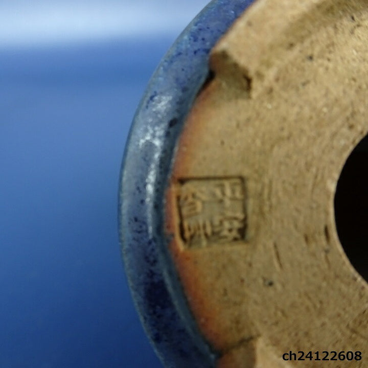 中古盆栽鉢 平安香草 小鉢 長辺 約7.2cm 丸鉢 外縁 中帯 釉薬 中古鉢 q1198415122