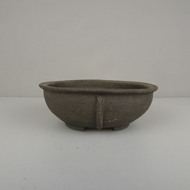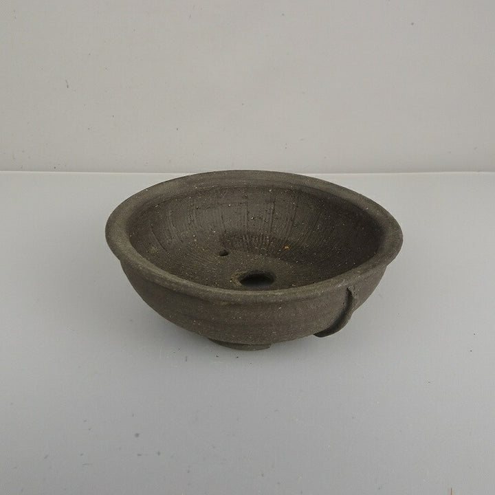 中古盆栽鉢 平安 虹泉 小型 長辺 約 11.3cm 丸鉢 外縁 泥鉢 中古鉢 k1212034285