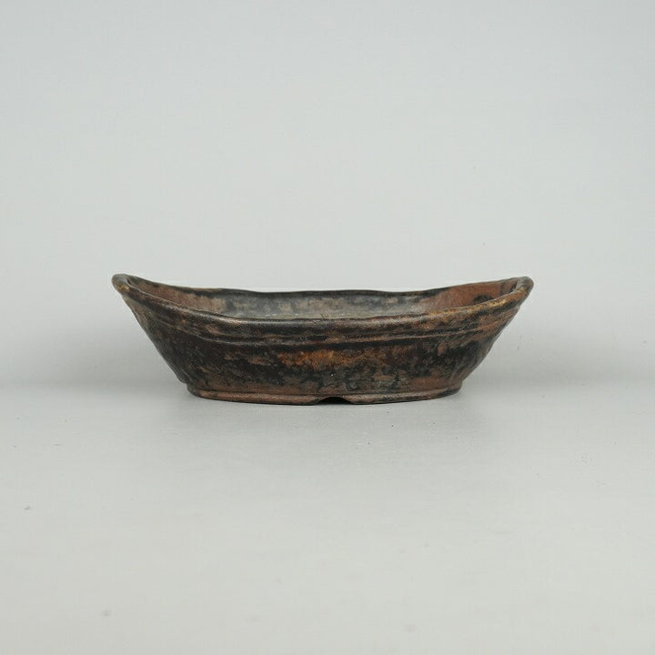 中古盆栽鉢 文山 越前文山 中型 長辺 約23cm 舟型鉢 釉薬 中古鉢 o1198418148