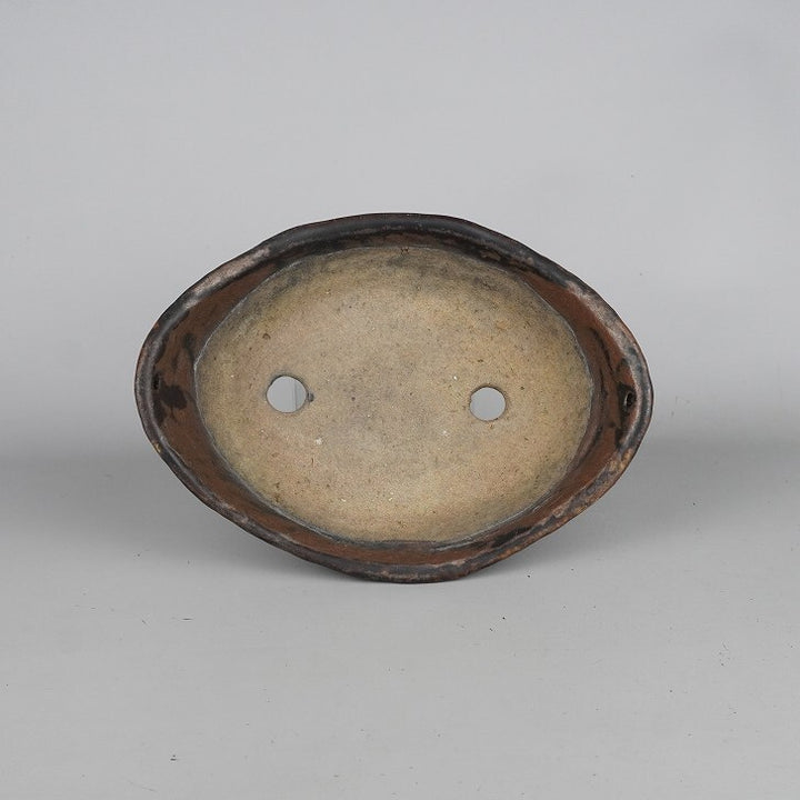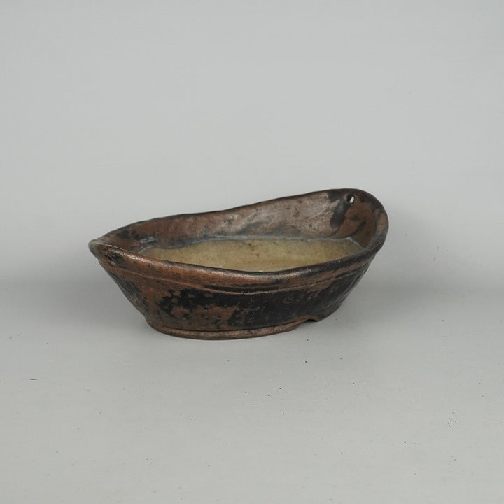 盆栽鉢 文山 越前文山 中型 長辺 約23cm 舟型鉢 釉薬 現品 中古鉢 越前文山 1973年に鯖江園芸を開園する。 地元に伝わる越前焼に則って独自の作風を確立し、手びねりによる焼締の他、辰砂などの釉薬や象嵌を施したものがある。...
